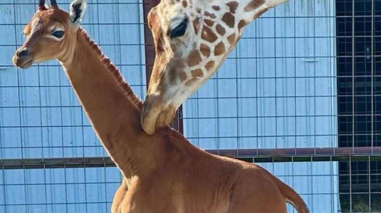 Именно там девятилетняя самка жирафа Шенна родила «безупречную» дочку. Когда ветеринары увидели детеныша, то были сильно удивлены: вместо характерной пятнистой шерсти, новорожденную покрывал однотонный коричневый мех. В последний раз такое явление наблюдалось в токийском зоопарке в 1972 году.
