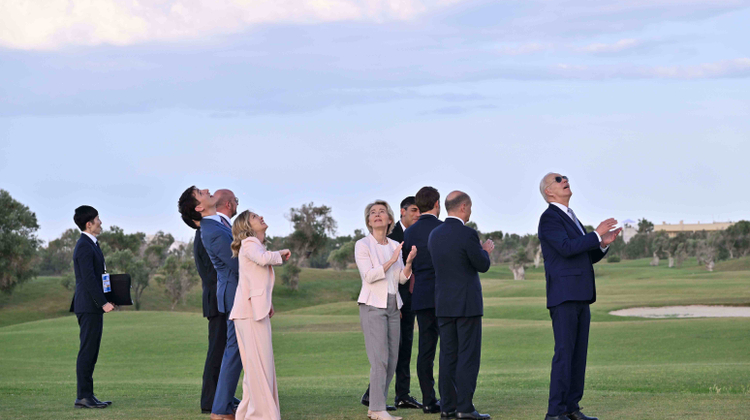 «Еще никогда у хозяйки саммита не было так мало общего с ее гостями. Стоя спокойно в брючном костюме лососево-розового цвета, возглавившая рейтинги лидеров на выборах в Европарламент ультраправая лидер Италии Джорджа Мелони ожидала остальных лидеров G7… В трехминутные интервалы или около того обеспокоенные мировые лидеры один за другим проходили под аркой, чтобы хозяйка могла поприветствовать их. Пустые и разбитые на электоральном поле боя, они выглядели как парад живых мертвецов».