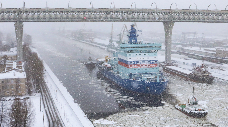 Третий серийный атомный ледокол, который вошел в состав атомного флота в 2023–2024 годах. К 2025‑му он прибыл в порт приписки Мурманск.