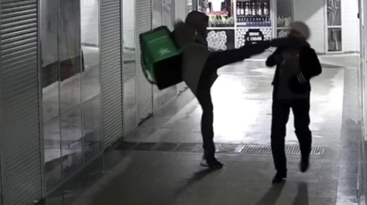 На кадрах с уличной камеры видно, как мужчина в форме курьера проходит мимо женщины, а потом разворачивается и бьет ее в лицо. От удара пенсионерка упала.