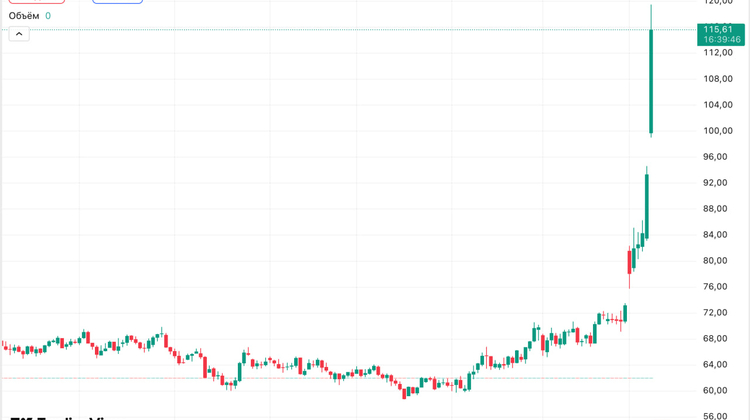 Стоимость нефти марки Brent в ходе торгов превысила $115 за баррель впервые с июня 2022 года. Это следует из данных TradingView.
